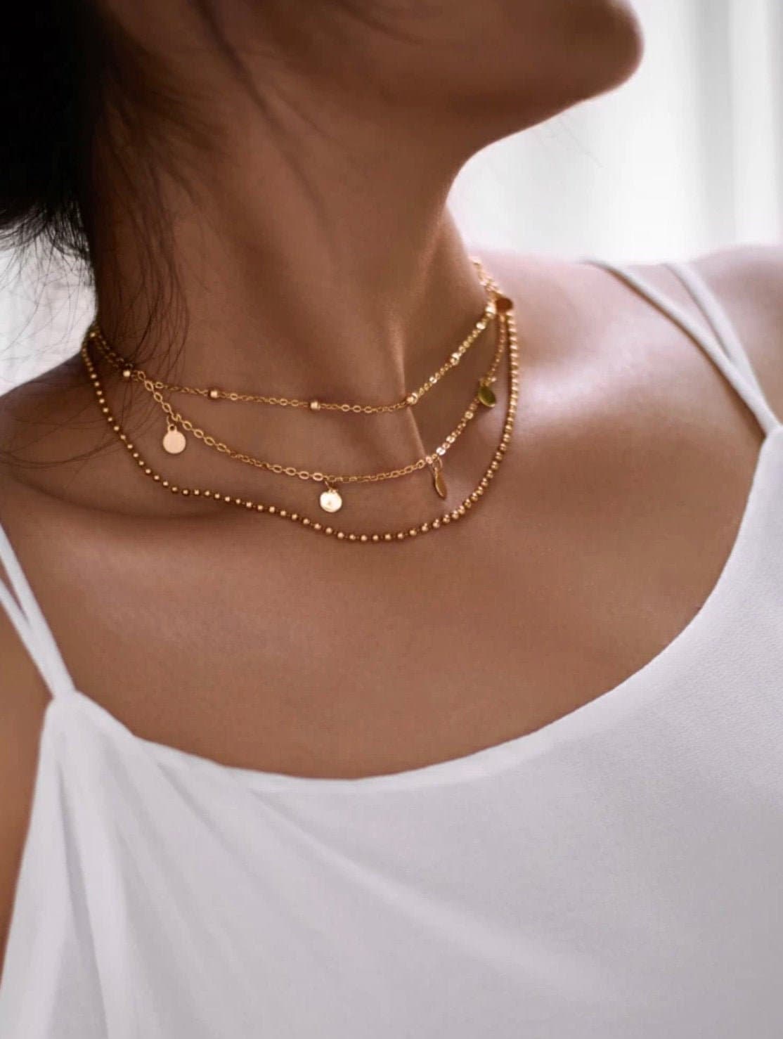 Diese mehrlagige Choker-Halskette aus Goldkette ist 3 Halsketten in 1! ***Kann in nur 1 Werktag schnell versendet werden!*** ***Geschenkverpackungsservice ist für alle Artikel von BeachLife Jewelry Co. verfügbar!*** ***Wenn Sie mehr als die als verfügbar aufgeführte Menge eines Artikels benötigen, schreiben Sie mir einfach eine Nachricht!***